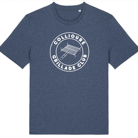 T-shirt adulte bleu chiné du Collioure Grillade Club