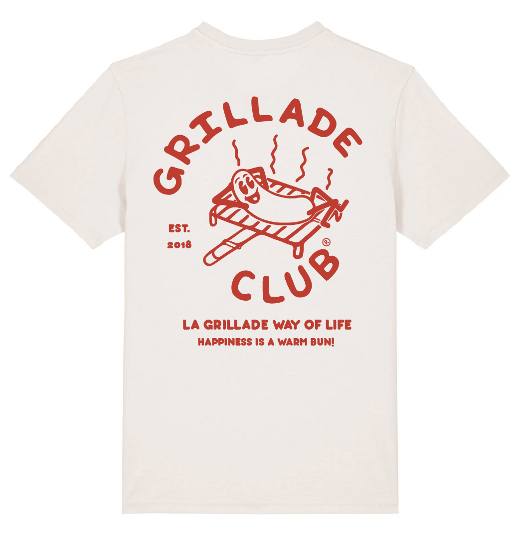 T-shirt VINTAGE WHITE HOT SAUCISSE ROUGE du Collioure Grillade Club, club de grilladins mondialement connu et créé en 2018!
