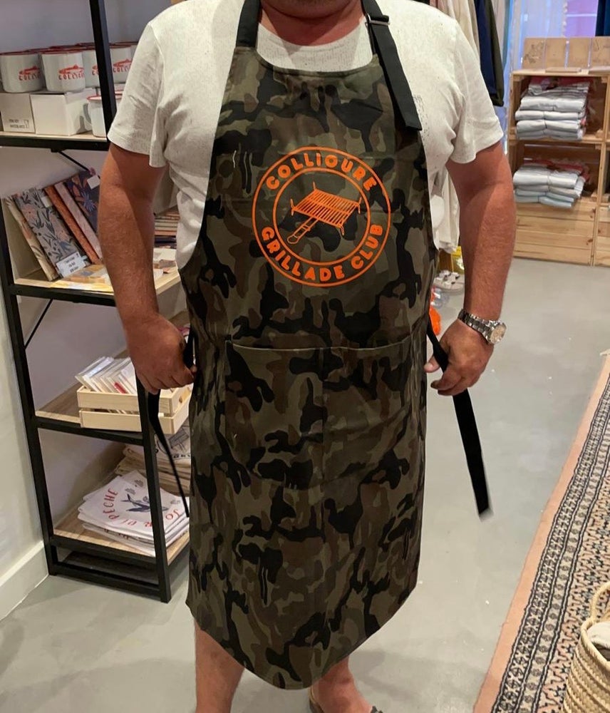 Tablier 100% coton du Collioure Grillade Club, club de grilladins mondialement connu et créé en 2018. Tablier disponible dans plusieurs couleurs, photos sur demande!